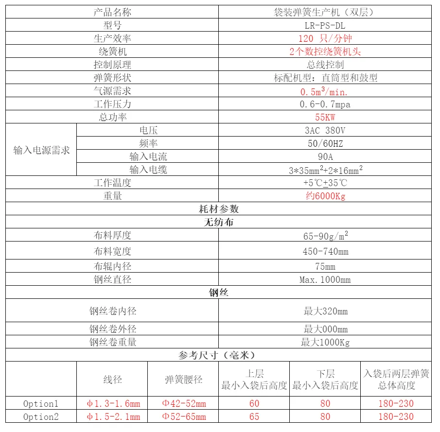 1.可实现一体式双层弹簧条生产